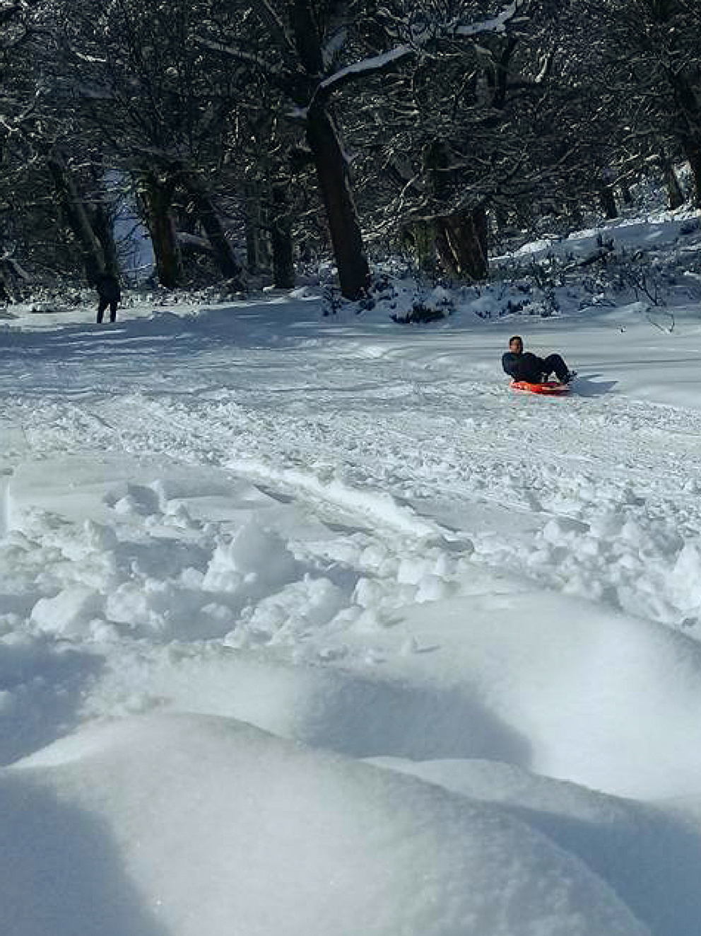 Al llegar al refugio de montaña, el entorno invita a disfrutar de la nieve en un ambiente único. El protagonista es el juego: tiempo libre para deslizarse con culipatín y divertirse en la nieve.