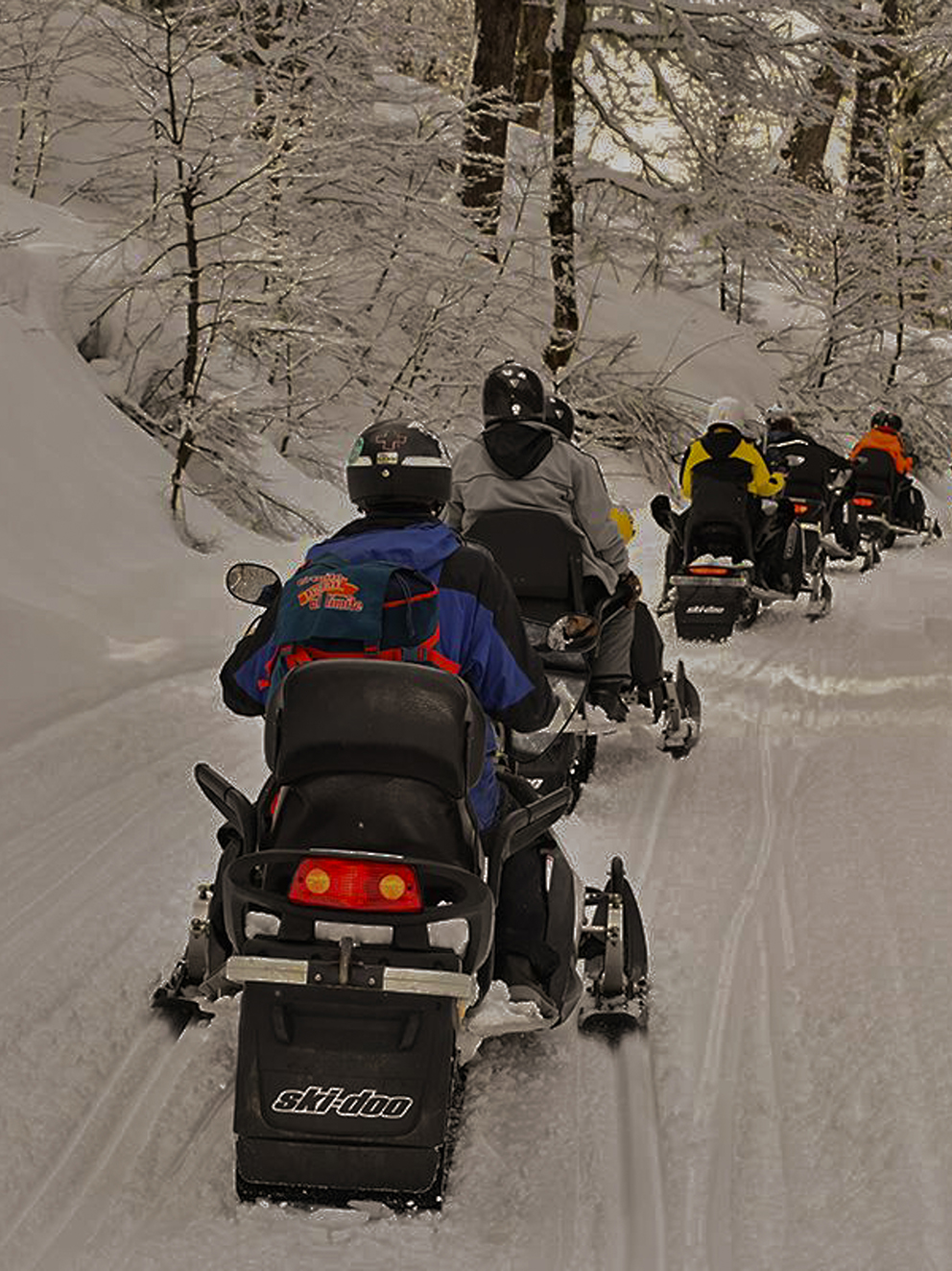 • Travesía guiada en moto de nieve o cuatriciclo (7 km totales).